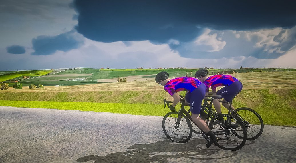 A fast course with little elevation called for strategic placement in the peloton to hide from the virtual wind. This inaugural stage of the series acted as a good weekend opener for our riders. Out of all the stages this was definitely the most difficult with regards to "RGT race craft" with not everyone making it to the finish line. But whilst the team didn't achieve huge success on the results board in Stage 1, they definitely learnt a few things to take into the next stages.